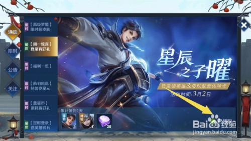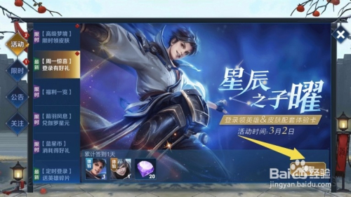 之后就可以看到星辰之子曜和皮肤体验卡,点击领取。