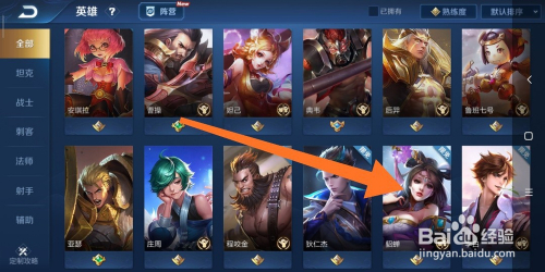 4.如图所示,在这个英雄界面中,我们点击箭头所指的“貂蝉”这个英雄。