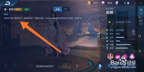 7.如图所示,弹出的面板中的内容,就是貂蝉这个英雄,被动技术的弄法申明了。