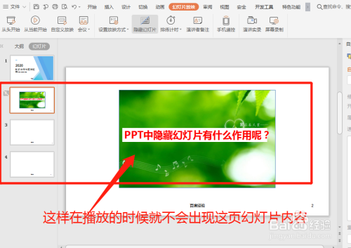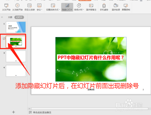 4-添加埋没幻灯片后,幻灯片前面呈现删除标记;