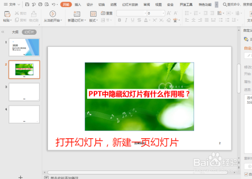 打开幻灯片,新建一页幻灯片;