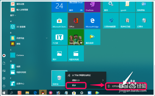 在起头屏幕中右键点击【收受接管站】 - 更多:二级菜单中只有 打开文件位置;