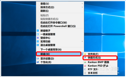 右键点击系统桌面空白处 - 新建 - 快捷体例;