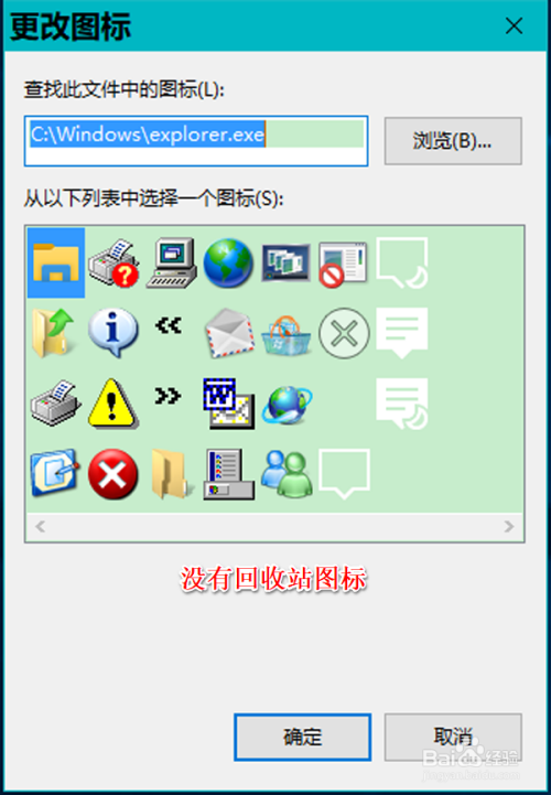但在打开的更改图标窗口中,没有看到收受接管站图标;