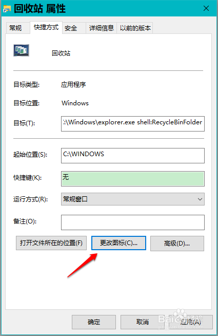 回到 收受接管站 属性窗口,我们再点击:更改图标;