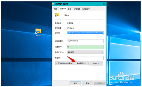此时在系统桌面上可以看到一个【收受接管站】的资本办理器图标,右键点击这个图标 - 属性 - 更改图标;