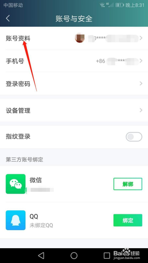 在账号与平安界面,点击“账号资料”。