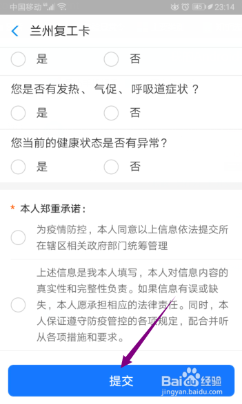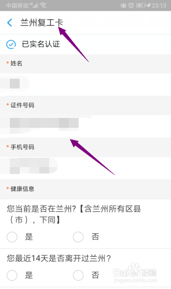 5、就会显示兰州复工卡,输入相关信息。