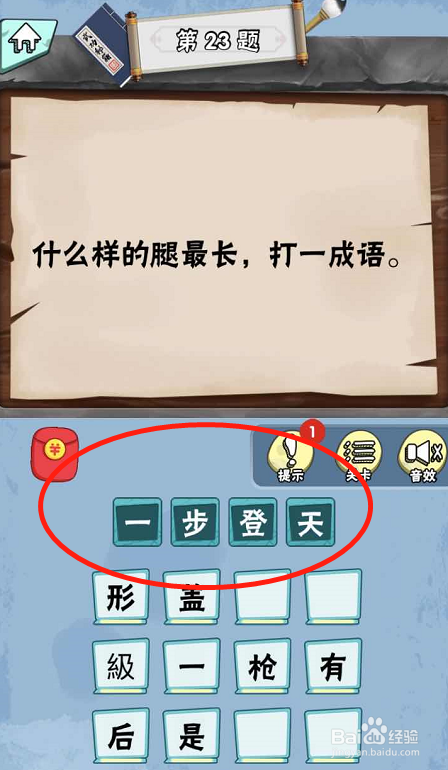 准确谜底是“一步登天”,因为腿最长,所以步子大,一步就可以登到天上去。