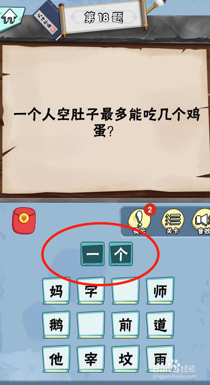 在脑子急转弯达人Lv4科学怪人第18关内,提问一小我在空着肚子的时辰最多能吃几个鸡蛋。