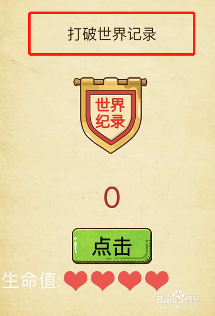 这一关要想过关的话就是打破宿世界记载,也就是字面上的意思,要不竭的用手指点击页面中的“宿世界记载”的盾牌,多点击几回就可以看见这个盾牌就会被击碎了。