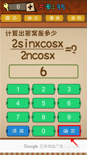 将6输入到谜底框再点击“确定”,这样最强的大脑第35关就顺遂经由过程了。