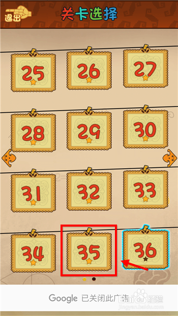 2.关卡列表中选择第35关进入游戏。
