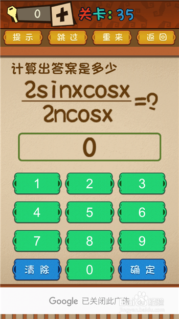 第35关的标题问题看上去是高中算术题,其实否则,因为按照正常的逻辑是算不出谜底来的,因为我们并不知道n等于几多,计较的最终成果最多到sinx/n。
