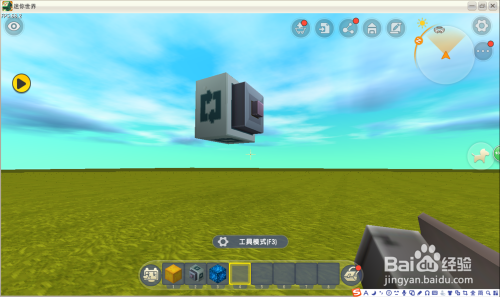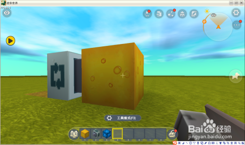 点击触碰按钮,确保是开启状况(按钮转为绿色)后,在按钮地点的方块的下面放一个方块,即可让转轴方块的速度调到慢速(方块扭转起来是慢速的)。