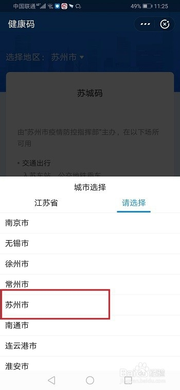 第二步进去健康码界面之后,点击左上方的选择地域,如下图所示: