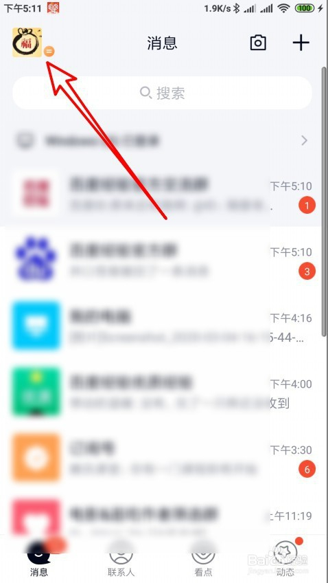 2、然后再打开了QQ软件本家儿界面点击左上角的本家儿菜单按钮。
