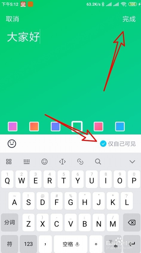 5、接着在打开的页面,点击随心帖右下角找到仅本身可见的选项。