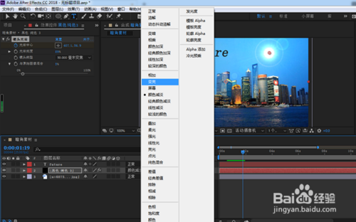 - 镜头光晕要成立在纯色层上,注重夹杂模式的调整。