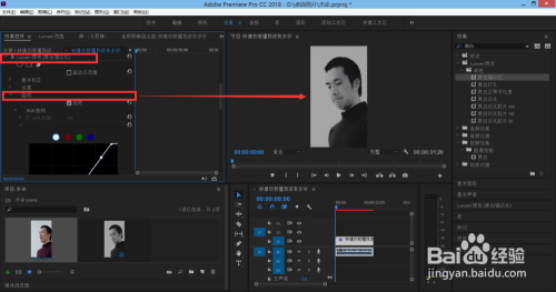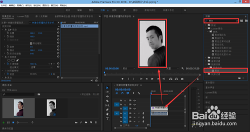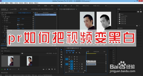 打开pr软件导入彩色视频素材,将素材拖到时候轴轨道上。