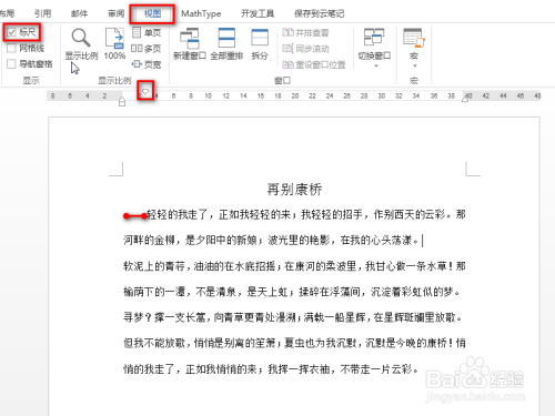 注重:若是没有看到标尺标记,需要在“视图”选项卡下找到并勾选“标尺”,即可看到标尺标记。