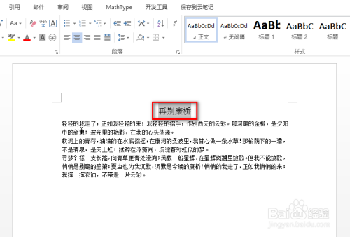 首先,选中第一行的题目,并快捷键Ctrl+E,可以看到题目主动居中了,结果如下图所示:
