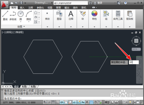3.这时会要求输入多边形的变数,这里输入“6”回车