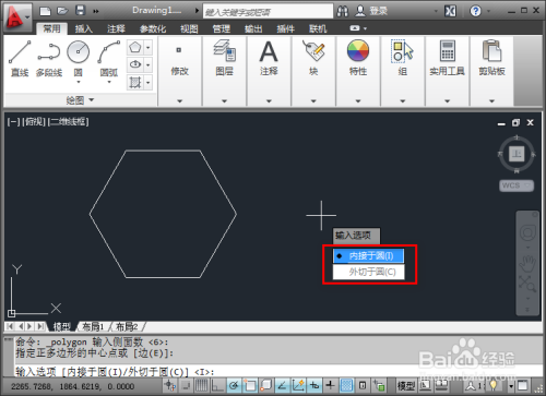 在肆意位置单击,然后选择是“内接于圆”仍是“外接于圆”,这里以“内接于圆”为例