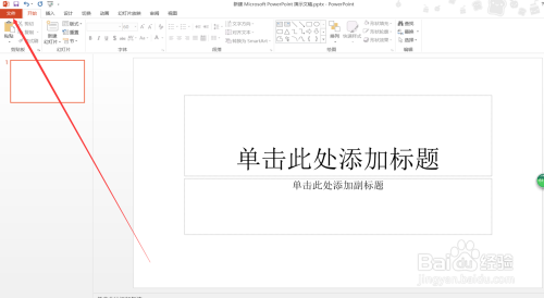 首先打开我们的PPT幻灯片,在上方东西栏中选择点击【文件】
