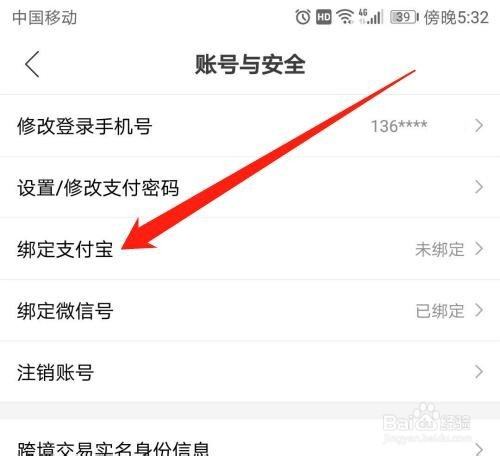 然后点击【绑定支付宝】,如下图所示。