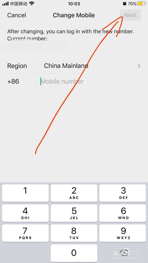 输入对应的号码并点击“下一步”选项以便打消微信绑定的手机号。