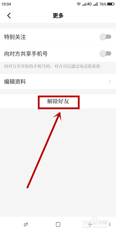 进入【更多】页面后,选择【解除老友】并在确认对话框单击【确定】即可解除老友关系