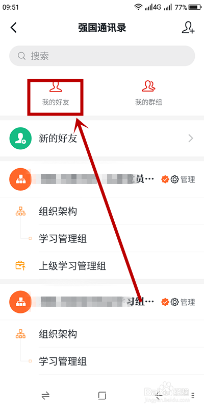 4、在【强国通信录】页面,找到【我的老友】单击