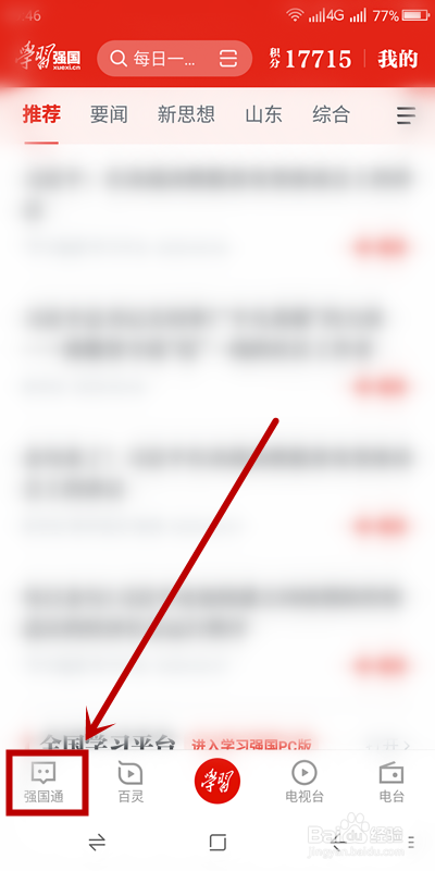 进入学习强国本家儿页后,单击左下角【强国通】