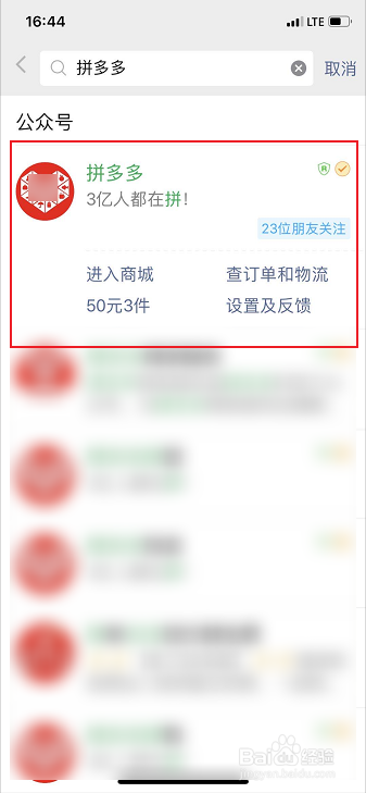 4、点击打开,【拼多多官方公家号】