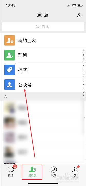 打开微信通信录,点击【公家号】