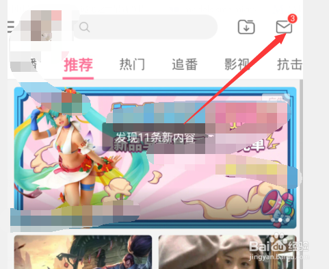 第一:手机端打开B站,点击右上角【信封】。