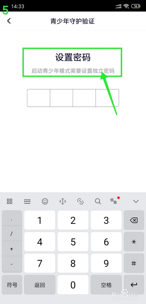 第五、初次开启青少年守护模式需要设置一个密码;
