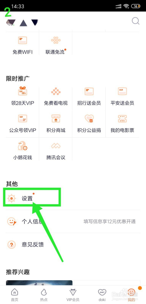 第一、打开腾讯视频后,在“我的”页面上滑页面寻找设置;