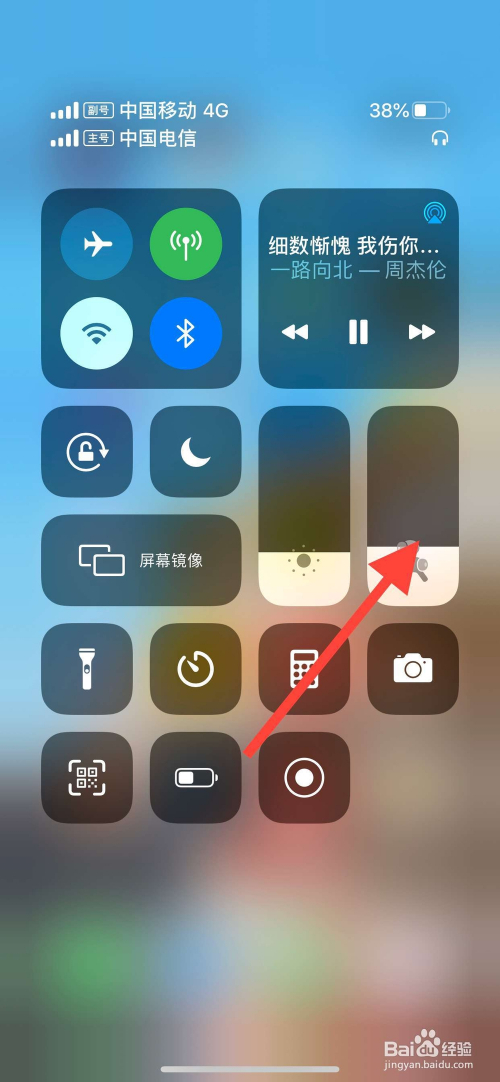 从手机右上角标的目的下拉,找到airpods pro音量条。