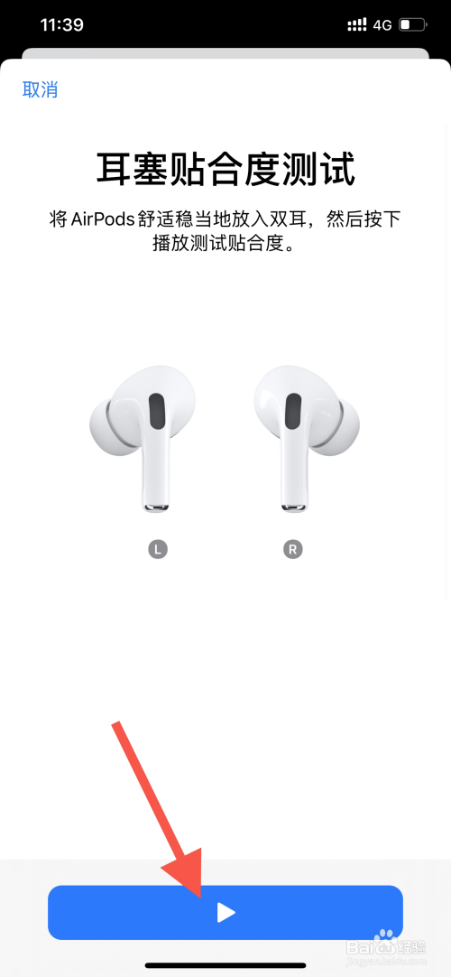 按一下airpods pro耳机下面的按钮以暂停/播放,两下前跳,三下后跳。