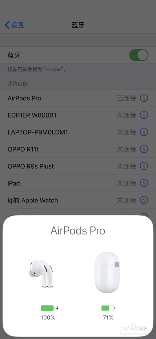 点击完当作,在桌面就能看到airpods pro的残剩电量了。