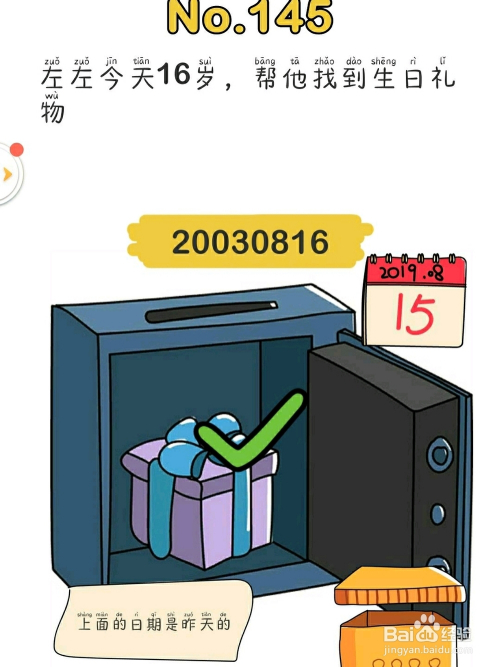 5.最后如下图,输入20030816,点击保险柜即可过关。