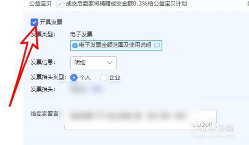 3、然后再打开的菜单中找到并选择发票昂首类型为小我。