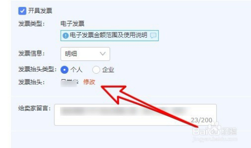 然后在打开的菜单中找到并选择发票昂首类型为小我。