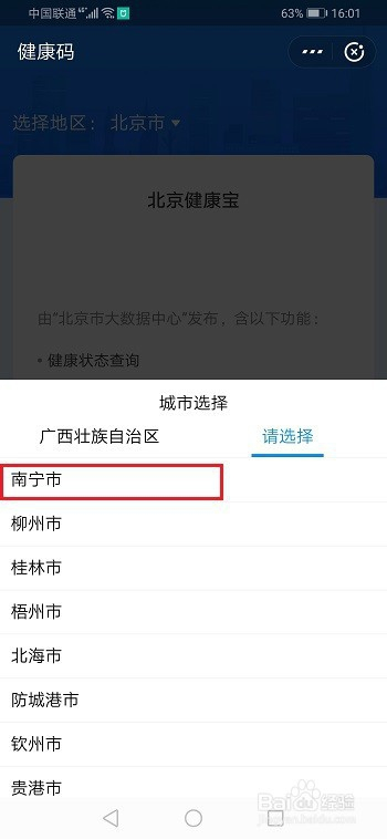 第三步选择广西,然后选择广西的城市,如下图所示:
