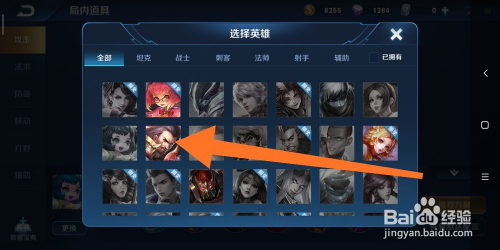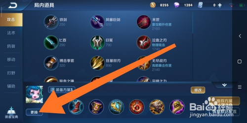 5.如图所示,我们点击箭头所指的“改换”按钮,就可以改换英雄了。