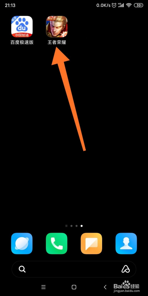 1.如图所示,我们点击箭头所指的“王者荣耀”图标,就可以进入到王者荣耀这条目游戏中了。