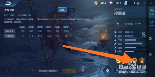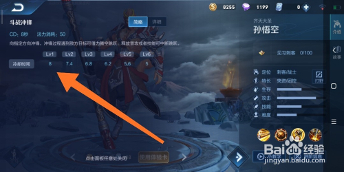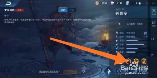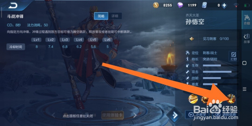 10.如图所示,弹出的面板中的内容,就是孙悟空这个英雄,一技术的弄法申明了。