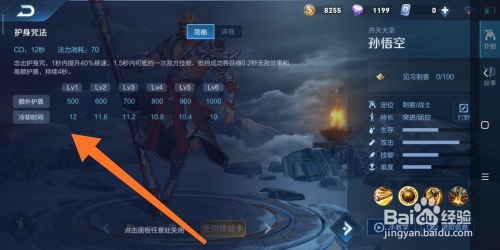 12.如图所示,弹出的面板中的内容,就是孙悟空这个英雄,二技术的弄法申明了。